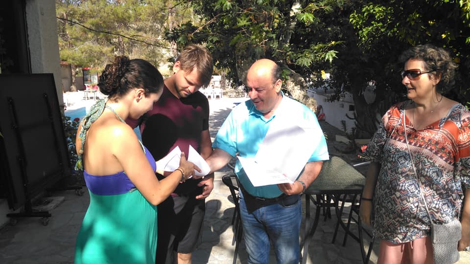 Η Τοπική Κοινότητα τους παρέδωσε επιστολή του Προέδρου με την οποία τους εύχεται να ζήσουν ευτυχισμένοι και οτι τους προσφέρει μια βδομάδα διακοπές στο ξενοδοχείο ESPERIDES όποτε το επιθυμούν να κάνουν χρήση!!