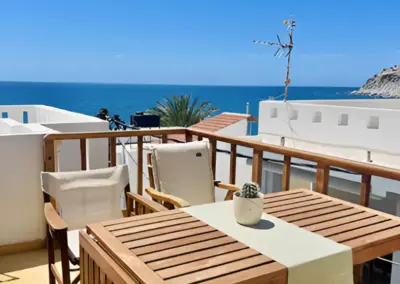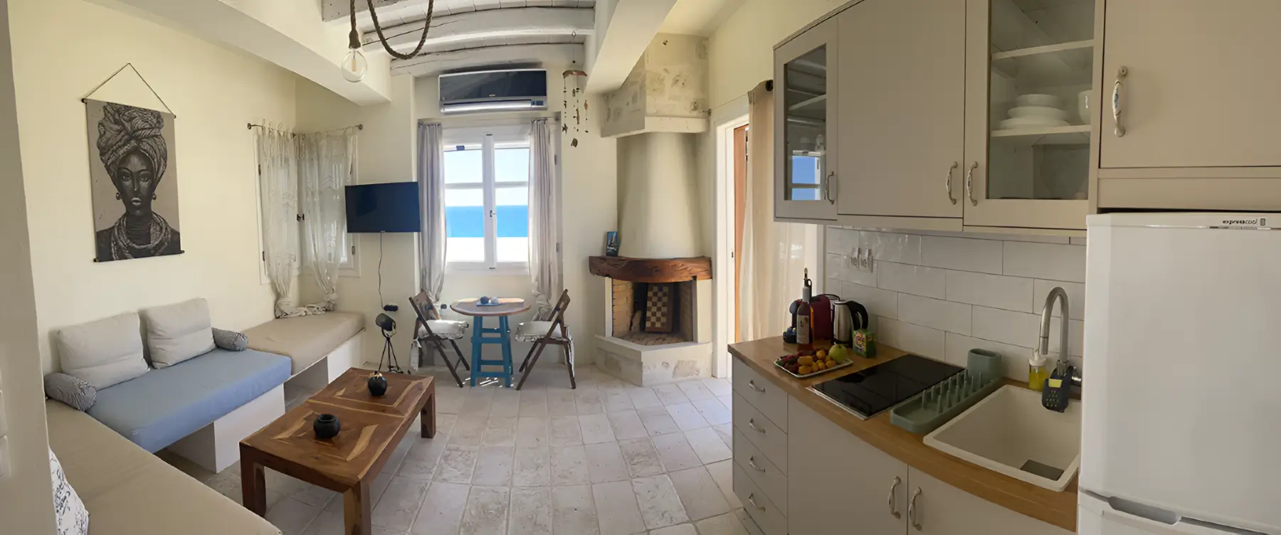 A new studio apartment boasting a bright, airy open space just steps from the beach. The Blue Horizon apartment is self contained with a full kitchen, private bath, living area and lovely outdoor patio perfect for dining and entertaining. The apartment is modern with cement counters, stainless appliances, with traditional wood louvered windows (with screens) to let the beautiful sea breeze through.