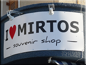 Haast kennen we niet in Mirtos. De tijd vliegt niet, maar stroomt vredig verder. Onze vriendelijke winkeliers hebben nog tijd voor een praatje.